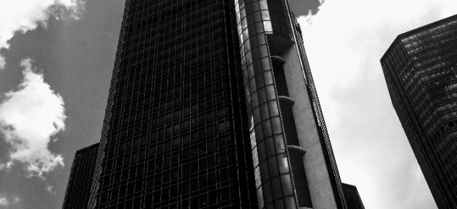 Top floor of the skyscraper. Laughing, engaged in conversation. The rain softly tapping on the windows that lined the building.